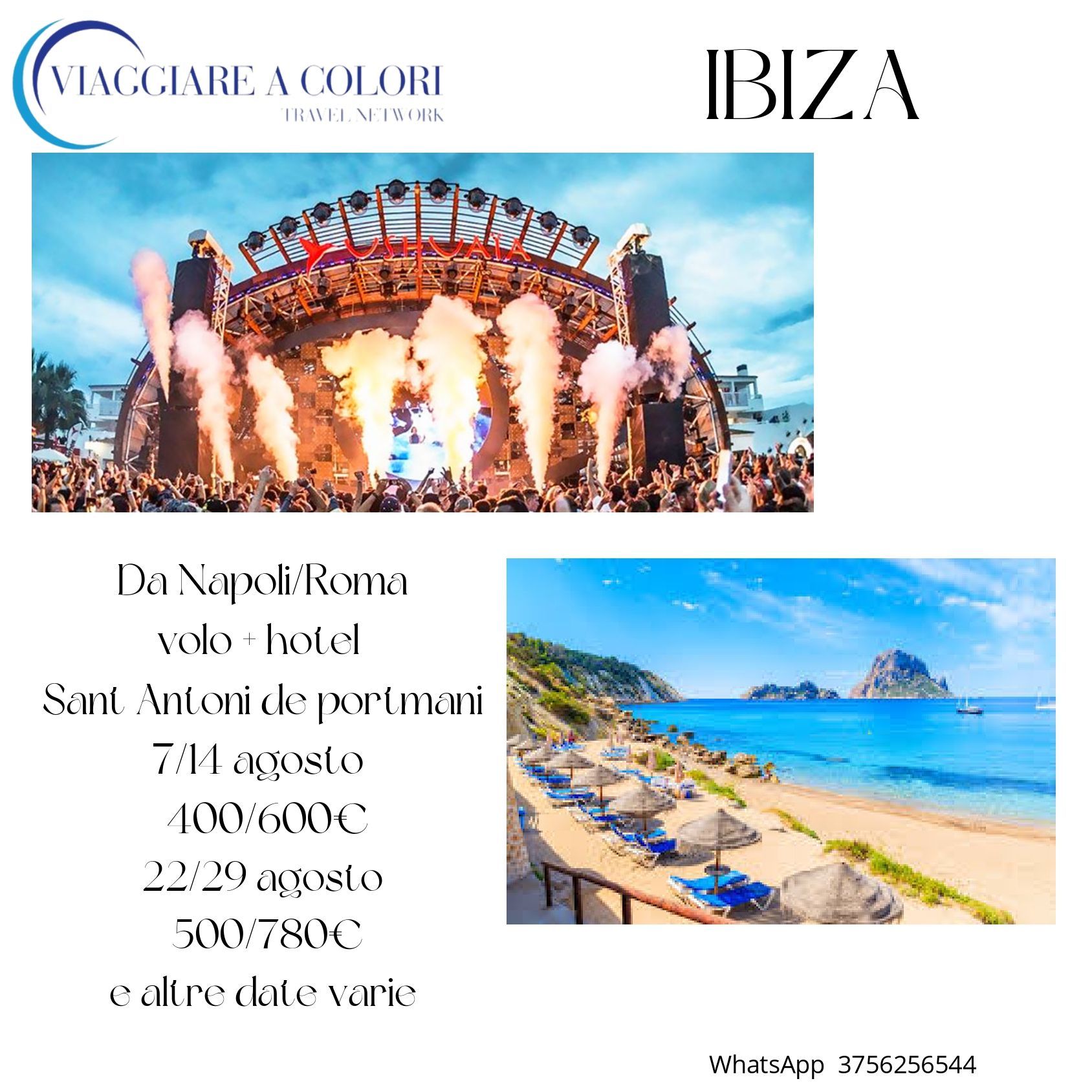 Preparati per un'avventura indimenticabile sull'isola di Ibiza! Con partenza da Napoli o Roma, il pacchetto vacanza offre un volo diretto andata e ritorno e un soggiorno in hotel, tutto incluso per una vacanza senza stress e piena di divertimento.
