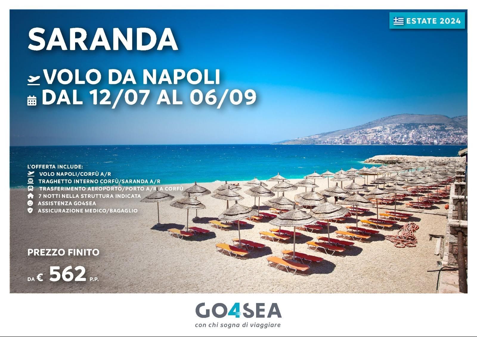 Parti per un'avventura unica nella pittoresca Saranda, situata sulle coste del Mar Ionio, con un volo diretto da Napoli. Saranda incanta i visitatori con le sue spiagge di sabbia dorata, le acque cristalline e l'atmosfera rilassata.