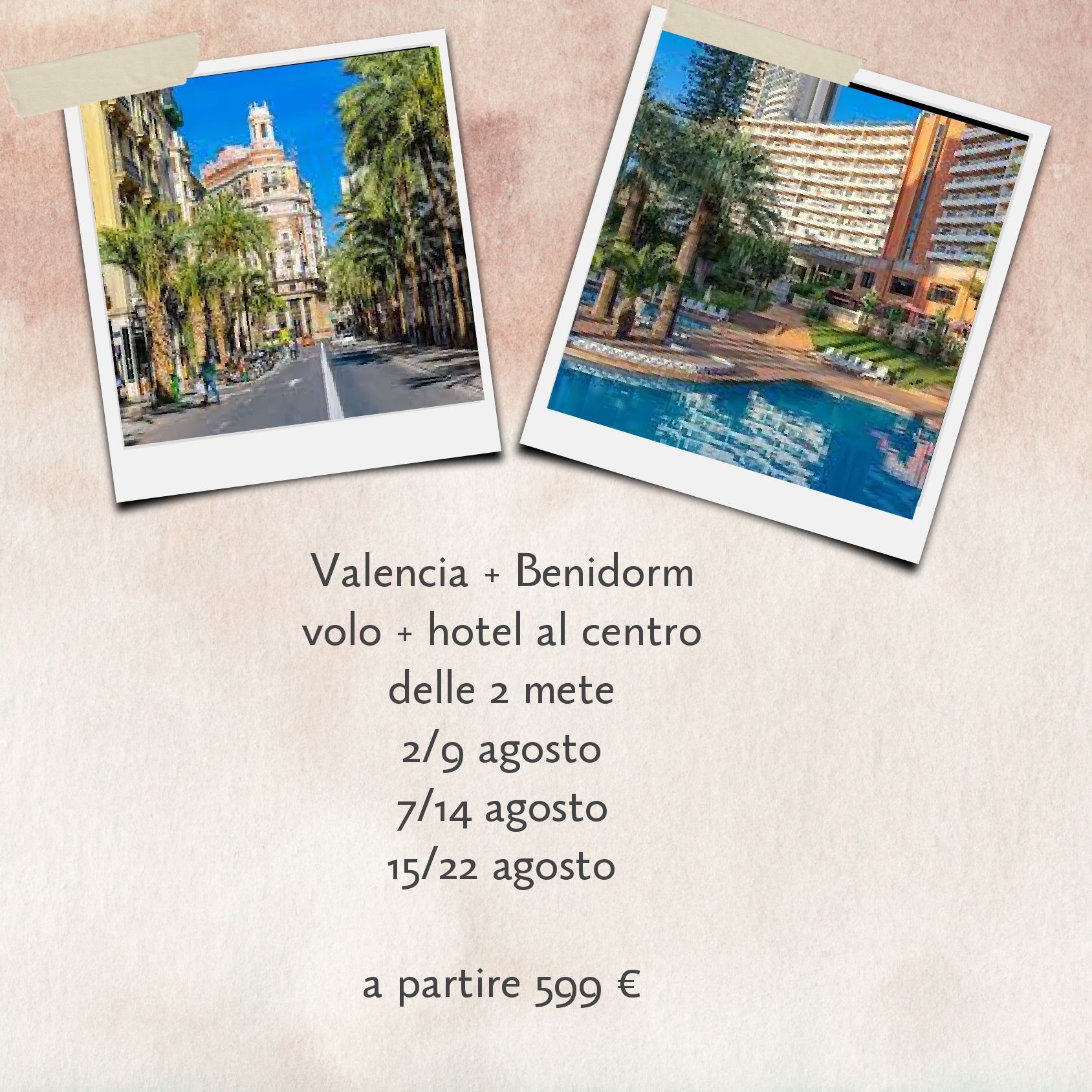 Esplora due delle destinazioni più affascinanti della Spagna con un unico pacchetto vacanza per Valencia e Benidorm! Il tuo viaggio include volo diretto andata e ritorno per Valencia, dove potrai soggiornare in un accogliente hotel nel cuore del centro storico.